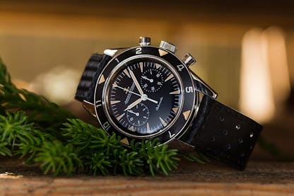 It seems a handful of our selections have a bit of a vintage feel to them, especially this Deep Sea Master Compressor from JLC. The diver-style chronograph is fitted with a 12h bezel, and has faux-aged luminous material applied to its bezel, hands, and indices. Unlike several other large Master Compressor models, this piece measures a more modest 40mm across, and is rated to 100m of water resistance.