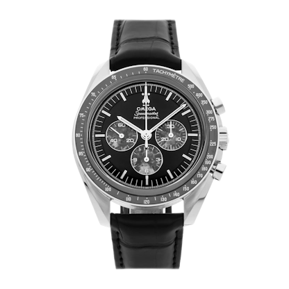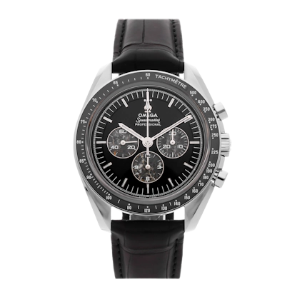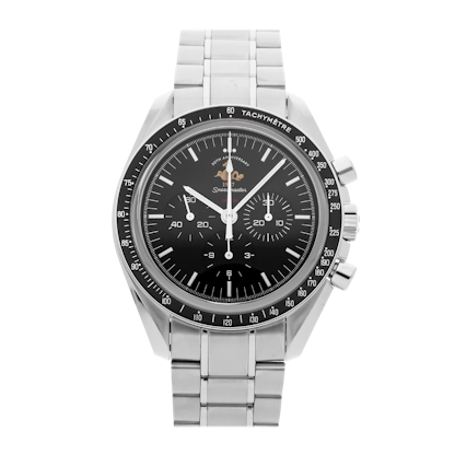 - Moonwatch Professional Hesalite (Ref. 310.30.42.50.01.002) - The contemporary heir to the watch worn during Apollo 11. This version features a solid caseback, Hesalite crystal, and hand-wound Co-Axial Master Chronometer movement.