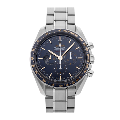 - Blue Side of the Moon (Ref. 304.93.44.52.03.002) - This moonphase chronograph is rendered in blue ceramic with a stunning lunar display and Co-Axial movement. A refined evolution of the Speedmaster's design language.