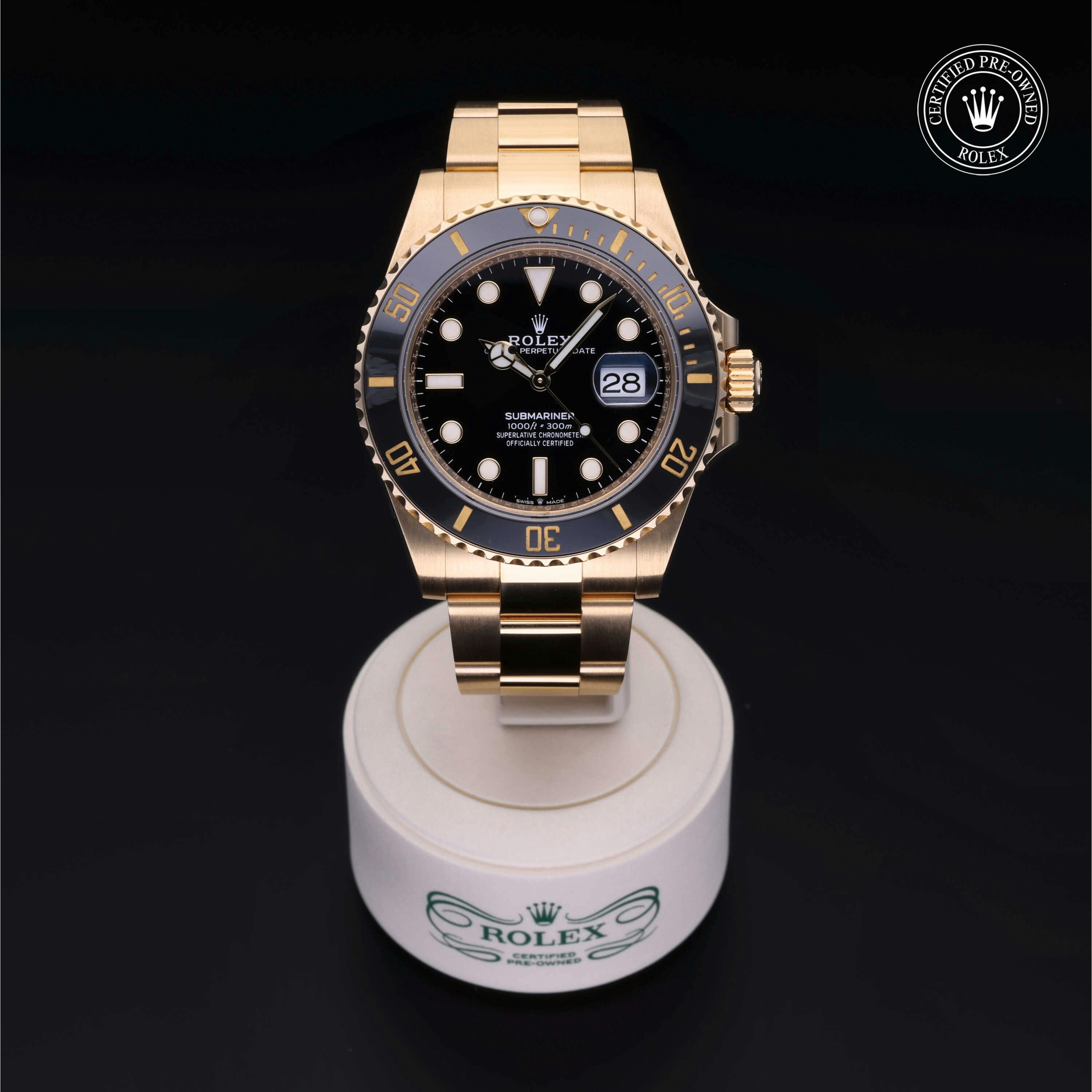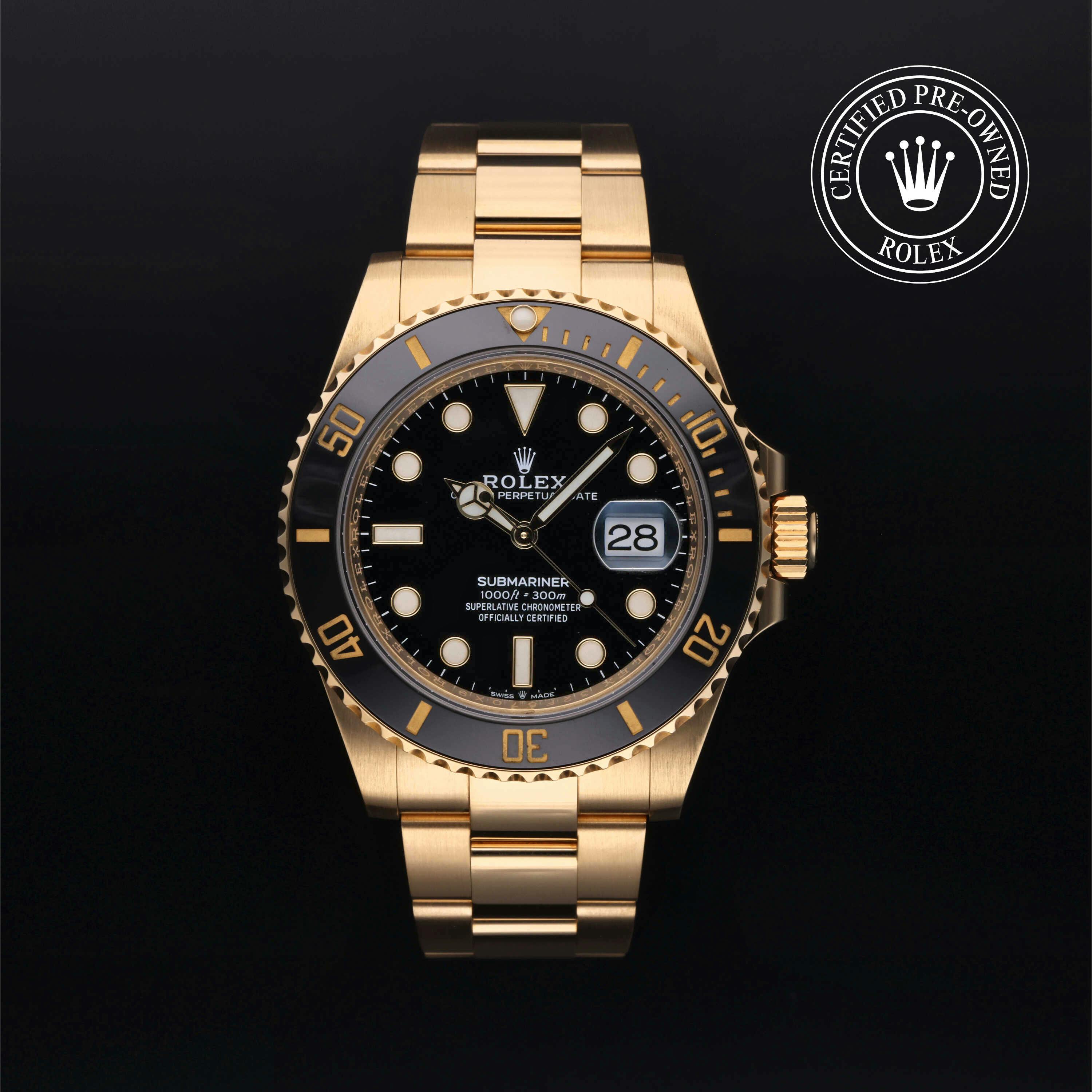 Pre-Owned Rolex Submariner Date (126618LN) self - winding automatic watch, features a 41mm 18k yellow gold case surrounding a black dial on an 18k yellow gold Oyster bracelet with folding buckle. Functions include hours, minutes, seconds and date. This watch has been serviced and comes complete with the original box and papers. Time remaining on the Manufacturer's service warranty!